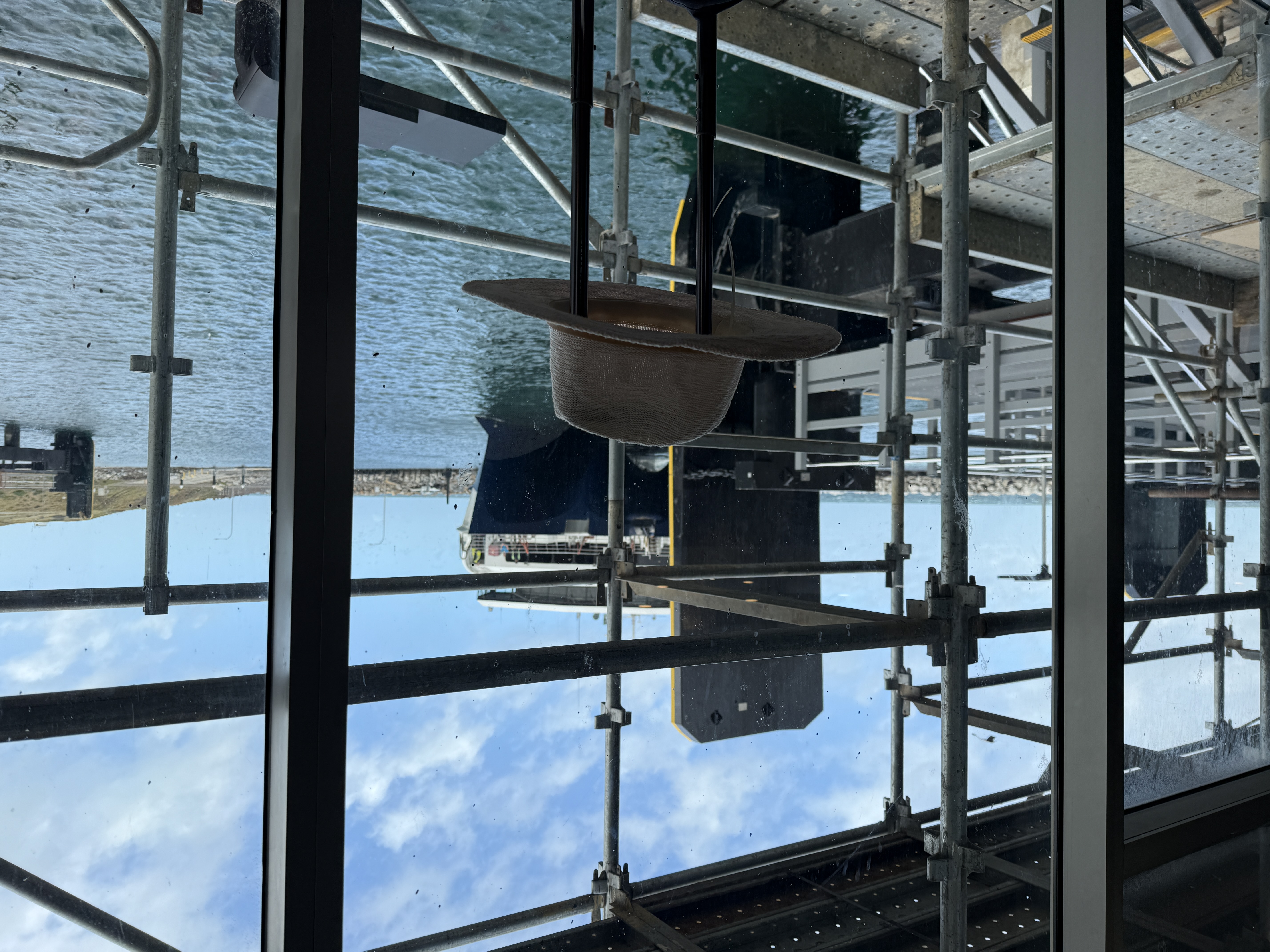 Cape Jervis: 1000 KI ferry arriving (did someone leave their hat behind?)